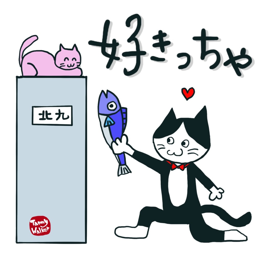 北九州の方言を、やんちゃでかわいい猫のキャラクターで表現。
