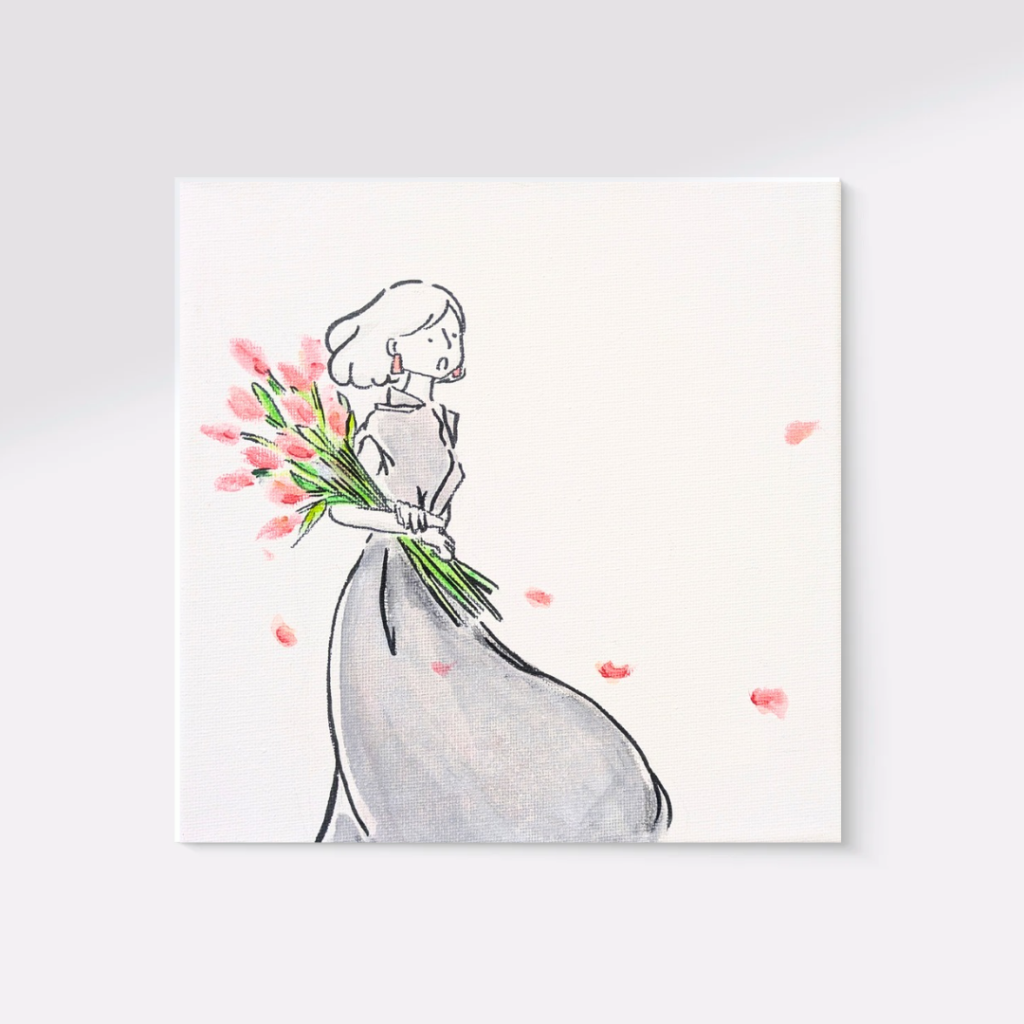 出産を機に絵画制作を再開。現在は3人の子育ての傍ら、「日常の中の感動」をテーマに絵画・イラスト作品を制作している。