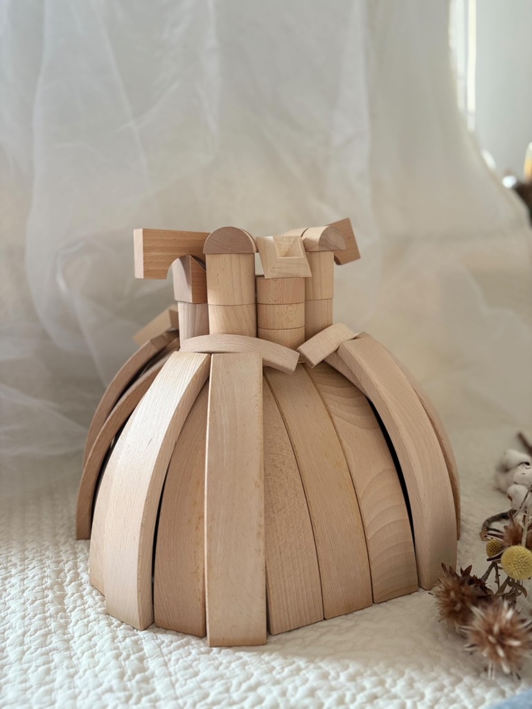 彫刻制作をきっかけに立体表現の面白さに目覚め、幼稚園教諭の経験や子育てを通して木育・積み木の世界へ。