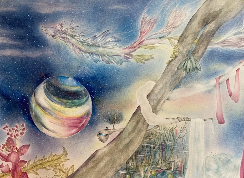 In this exhibition, she interprets the dragon as a symbol of inner strength and awakening through the lens of her imaginative universe.