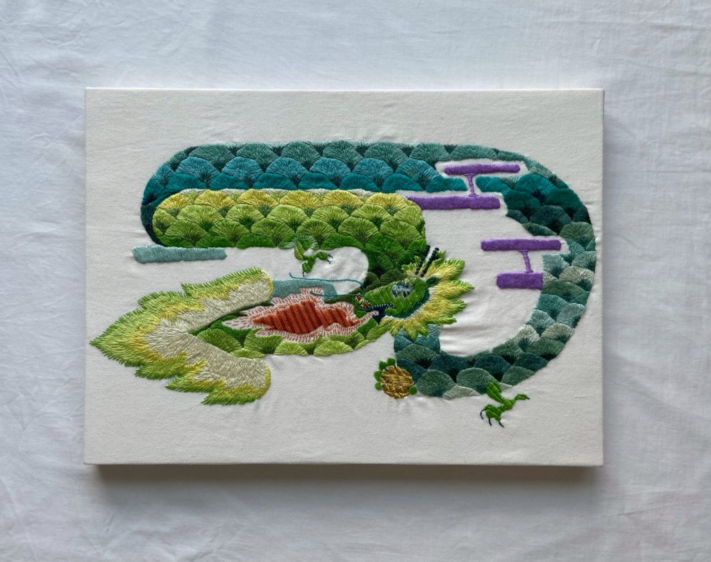In this exhibition, she will present her own embroidery works as well as a piece created together with her 8-year-old child.