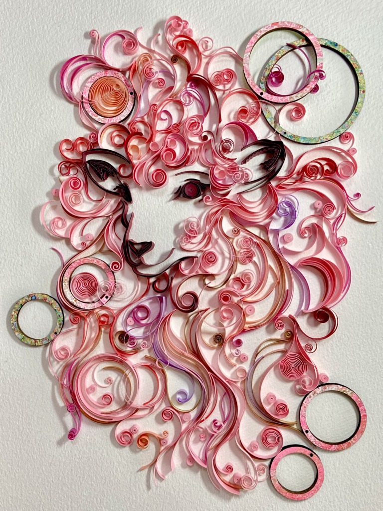 細長い紙を巻き重ねて形を生み出す装飾アート、ペーパークイリングの技法を用いて制作。