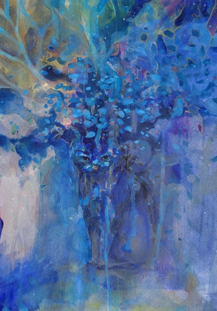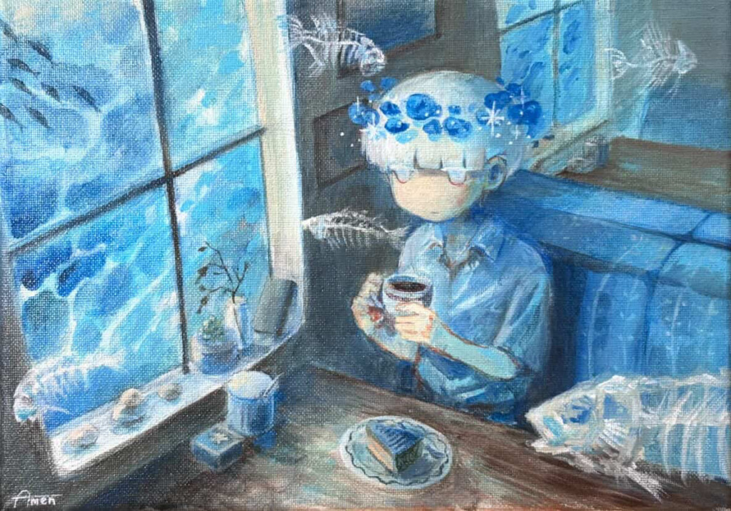 2020年頃、美術館で見た日本画をきっかけに多様な画材に興味を持ち、油彩・アクリル・水彩・ペンなど、さまざまな技法を用いて制作を始める。