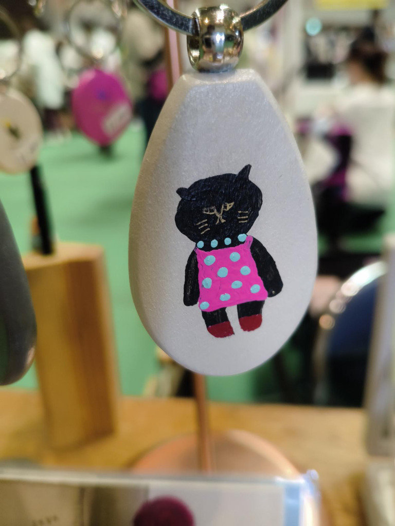 自由な線の中に隠れている猫たちは、まるで小さなお守りのような存在。