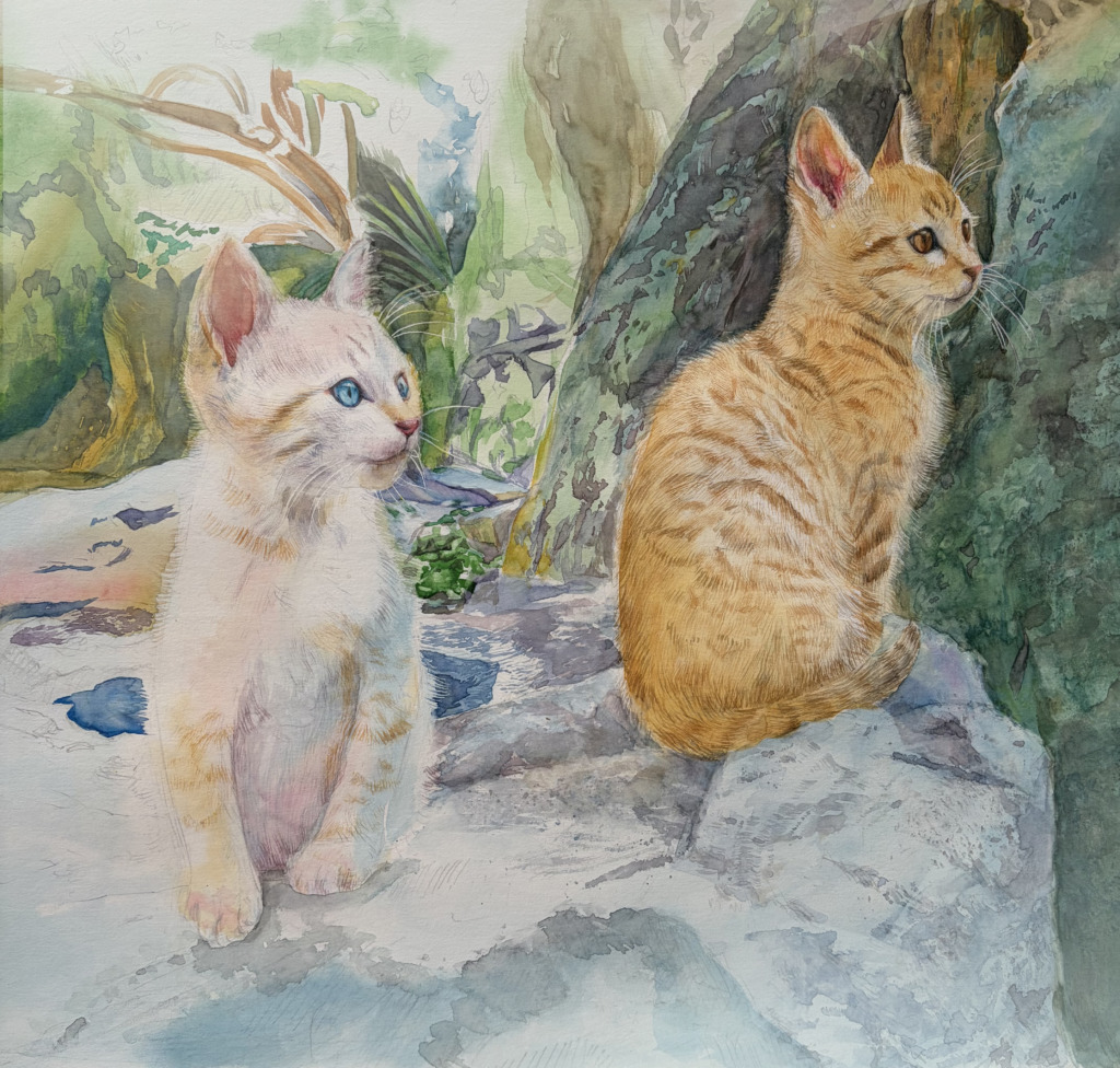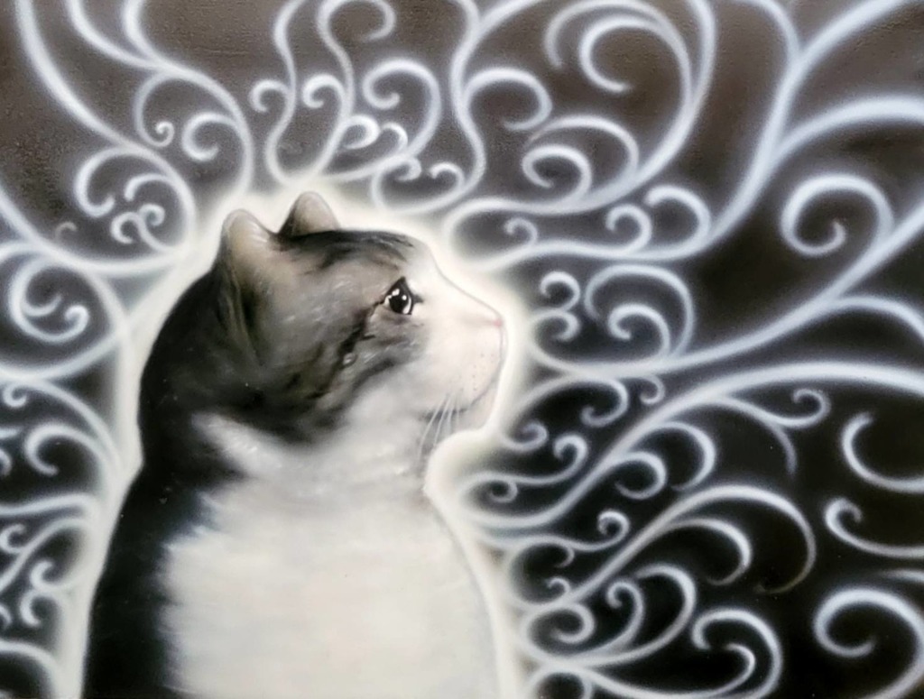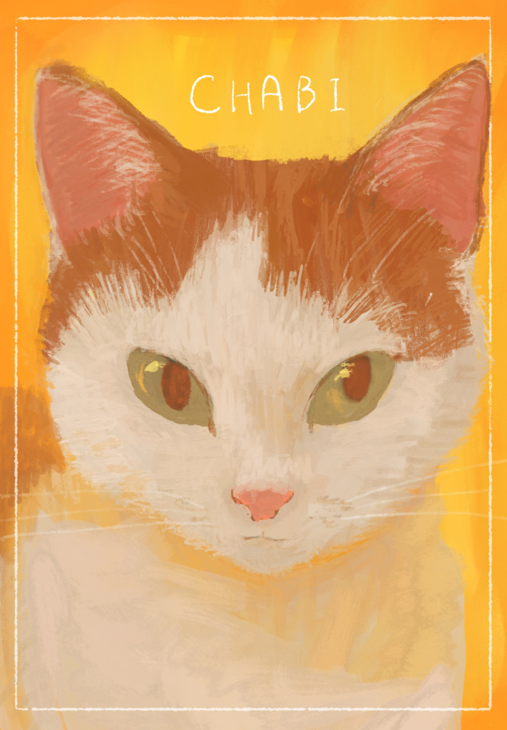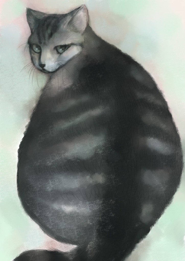 最近は、家で暮らす猫の「ミーちゃん」をテーマに作品を描いている。